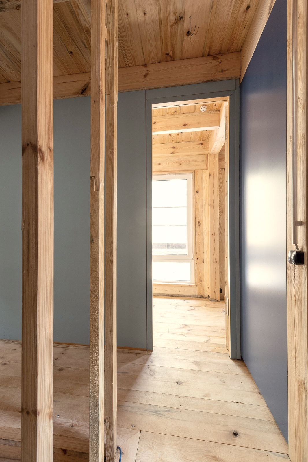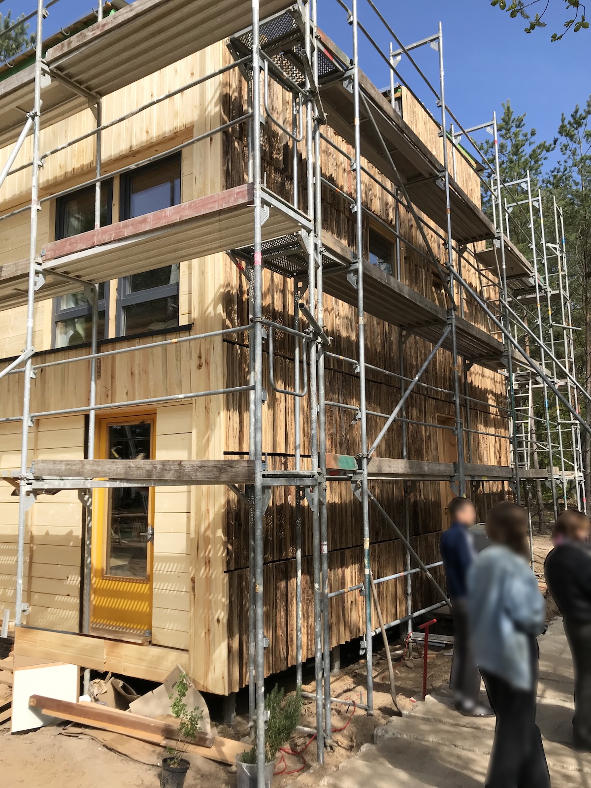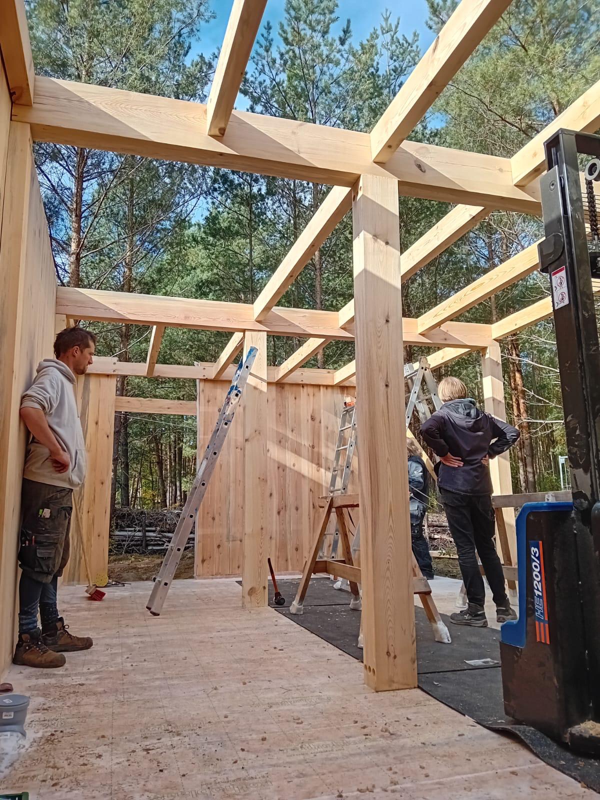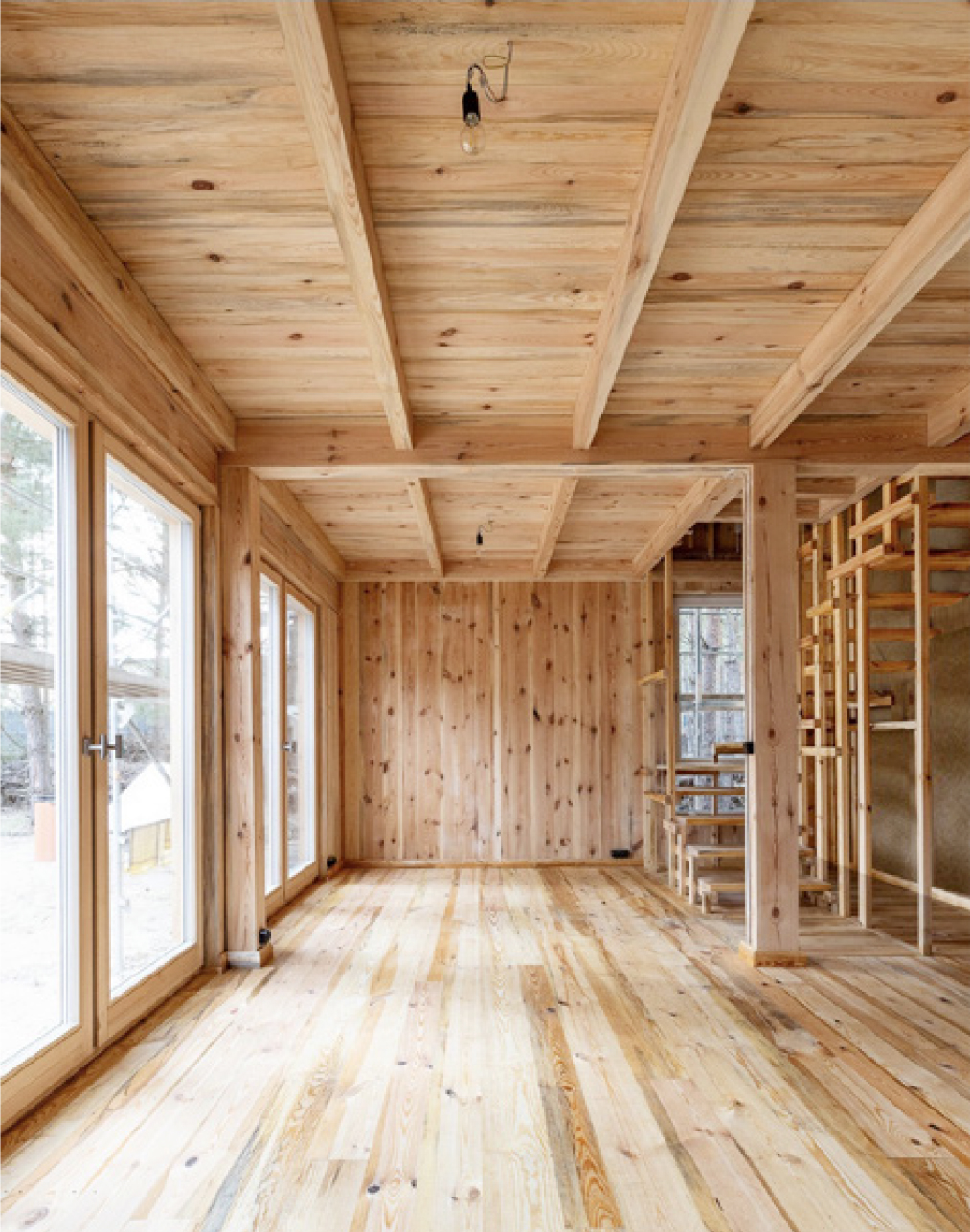 The building pulsates wood as architecture, craft and construction that integrates a holistic energy system with geothermal heating and cooling with a photovoltaic roof.